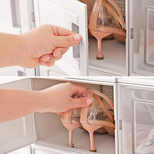 - ¿ARMADO? SÍ, PUEDE! Conecta el cuerpo con la parte delantera y posterior en unos segundos gracias al ingenioso diseño de pestañas plegables, y ya está listo. Cada organizador de zapatos tiene un tamaño interior de 24,5 x 31 x 17,5 cm y puede caber como máximo talla 44