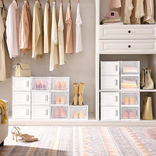 - ENCONTRAR TUS ZAPATOS: ¿No puedes encontrar tu par de zapatos favoritos que usaste el verano pasado? Ordena tus zapatos por temporada con este juego de 18 cajas de zapatos con 9 transparentes y 9 blancos, para que siempre sepas dónde están tus zapatos