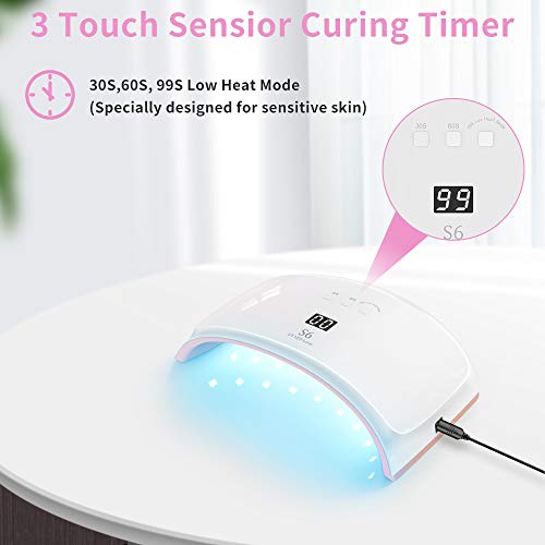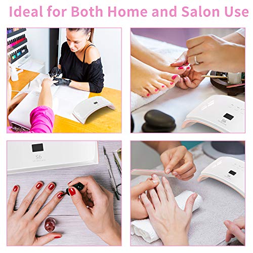- Secador de uñas de alta eficiencia: la lampara led uñas de 120 vatios funciona con todos los esmaltes de gel UV y cura los esmaltes LED en pocos segundos. Ahorre tiempo, esfuerzo y dinero, le ofrece la misma experiencia de salón en casa.