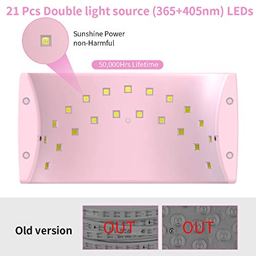 - ăLĂĄmpara LED uñasăSecado en todas las direcciones, el cuerpo en forma de arco crea un gran espacio para adaptarse a manos y pies enteros, incluso los de gran tamaño. 21 perlas de luz lĂĄmpara UV / LED se distribuyen uniformemente para garantizar el secado completo de cada uña