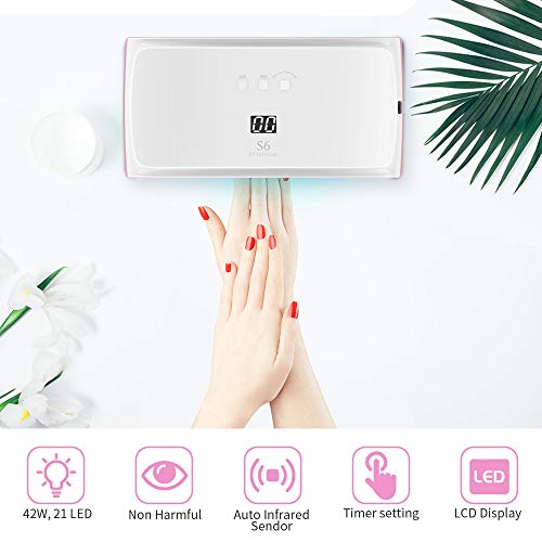 - Resultados de curado perfectos: las bombillas incorporadas de 42 piezas en el secador de uñas pueden 180 grados para curar sus 5 uñas o uñas de los pies de manera uniforme y completa al mismo tiempo, no se preocupe, los lados de las uñas no se curan.