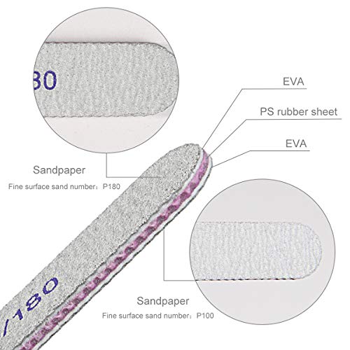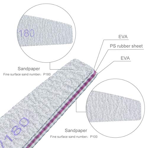 - âŁ[Arena de doble cara]: estas limas de uñas son de doble cara y tienen un mate de diferentes densidades en ambos lados. Un lado es de grano 100, adecuado para la formaciĂłn de uñas y el desbastado; el otro lado es de grano 180, lo que hace que el borde de la uña sea mĂĄs delicado.