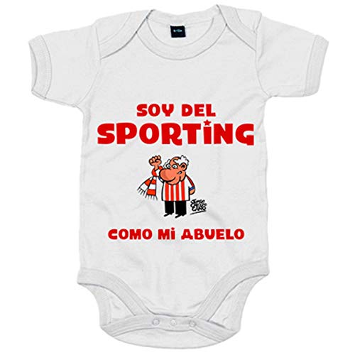 Body bebé soy del Sporting de Gijón como mi abuelo - Blanco, 6-12 meses