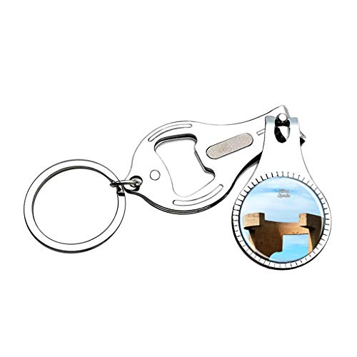 Hqiyaols Keychain España Iglesia de San Pedro Gijón Cortaúñas Abridor de Botellas Lima de uñas Llavero Cristal Acero Inoxidable Multifuncional Recuerdo Regalo