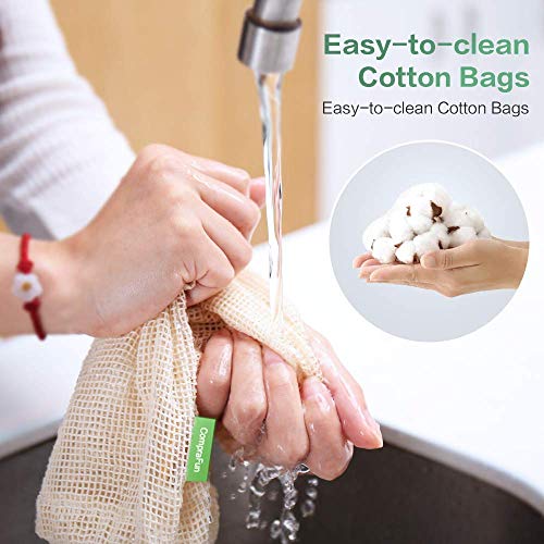 - ? FĂCILES DE LIMPIAR: Como son de algodĂłn orgĂĄnico, las puede lavar a mano o con la lavadora y se secan rĂĄpido gracias a su tejido para volverlas a utilizar. Vamos a proteger el medio ambiente y sustituimos las bolsas plĂĄsticas con estas bolsas ecolĂłgicas.