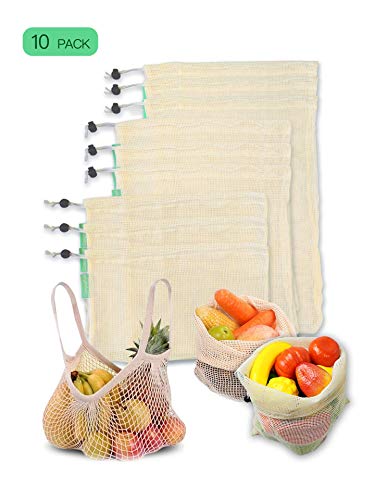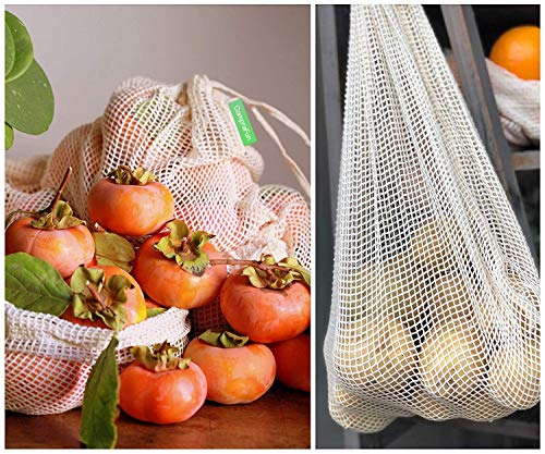 - ? BIODEGRADABLES Y REUTILIZABLES: Si estĂĄ cansado de acumular bolsas de plĂĄstico, le aconsejamos que utilice estas bolsas para la compra diaria. Estas bolsas de red tienen un alto grado de transpiraciĂłn gracias a su material de algodĂłn y tejido. Mantienen los productos protegidos y a la vez frescos.