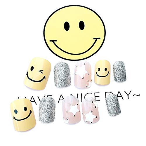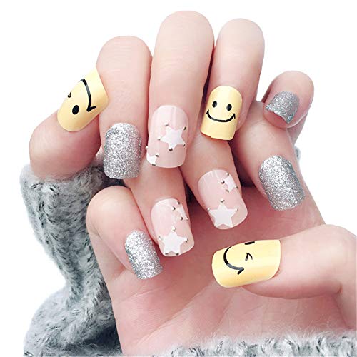 Beaupretty 44PCS NiƱos, uƱas falsas, chicas, sonrisa, cara, prensa en las uƱas para niƱas