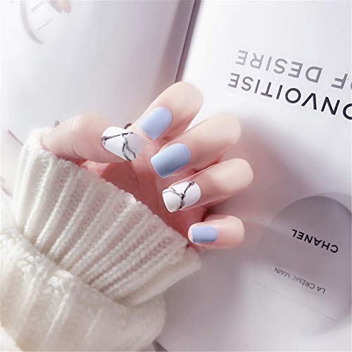 Mayelia Punk Mate Presione sobre las uñas Azul Ataúd Uñas Falsas 24 piezas Largo Uñas postizas Largo para mujeres y niñas