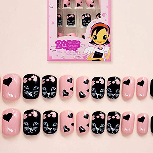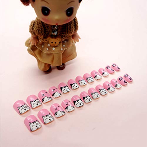 Lurrose 120 piezas de uñas postizas para niños uñas de dibujos animados pre-pegamento uñas de cubierta completa hermosas uñas postizas diy para niños niñas (patrón aleatorio)