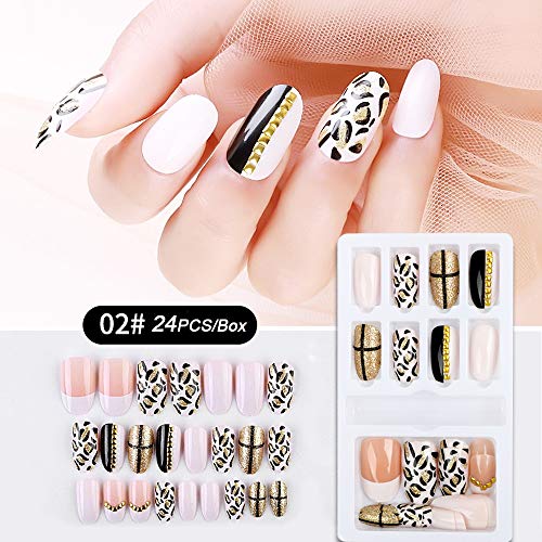 24pcs Uñas postizas, Uñas Falsa Artificial, Cortas, con Pegamento, para Decoración del Arte del Uñas (1)