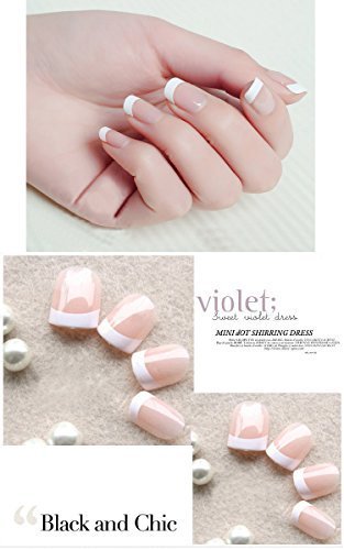 - Cómodas y fÔciles de utilizar:Aplicar las uñas postizas manicura francesa con pegamento para uñas (no incluido), solo es necesario unos minutos, pode acadar.