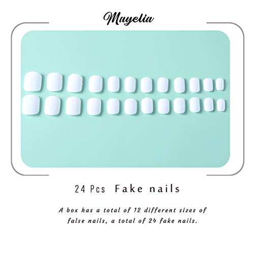 Mayelia Mate Presione sobre las uƱas Blanco UƱas postizas 24 piezas Corto Cuadrado UƱas falsas para mujeres y niƱas