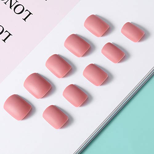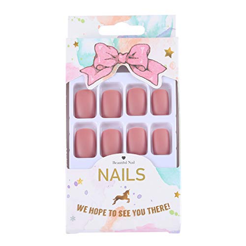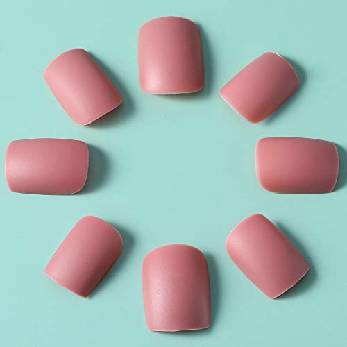Sethexy Mate Corto UƱas postizas Cuadrado Puro Rosado 24 piezas Cobertura total AcrĆlico Seguir adelante Puntas de uƱas falsas para Mujeres y Muchachas
