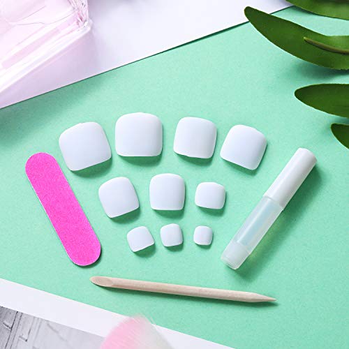 72 Piezas UƱas Postizas de Dedos de Pie UƱas de Pies Falsas Cortas Cuadradas con Pegamento para Mujeres NiƱas (Blanco)