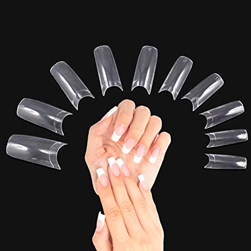 - El paquete contiene: una caja de 500 piezas puntas de uƱas francesas transparentes + una caja de 500 piezas de color blanco natural (no blanco puro) consejos de uƱas francƩs. Cada caja tiene 10 tamaƱos y 50 piezas por talla.