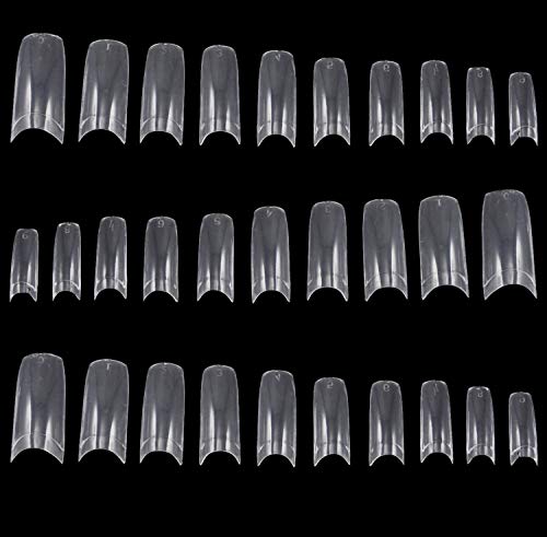 - Clavos Falsos Transparente - 500 piezas de uƱas postizas en una caja transparente, incluye 10 tamaƱos diferentes para que usted elija, 50 piezas para cada tamaƱo (tamaƱo 0 - 9), adecuado para la mayorĆa de las personas.