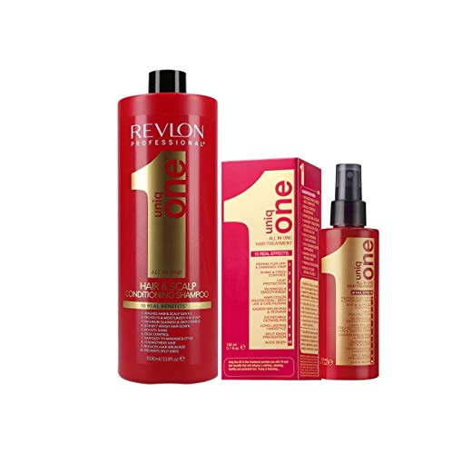 - Pack Revlon Uniq One Champu 1000ml + Uniq One Tratamiento 150ml. dejarĂĄ tu pelo brillante y con aspecto super saludable.