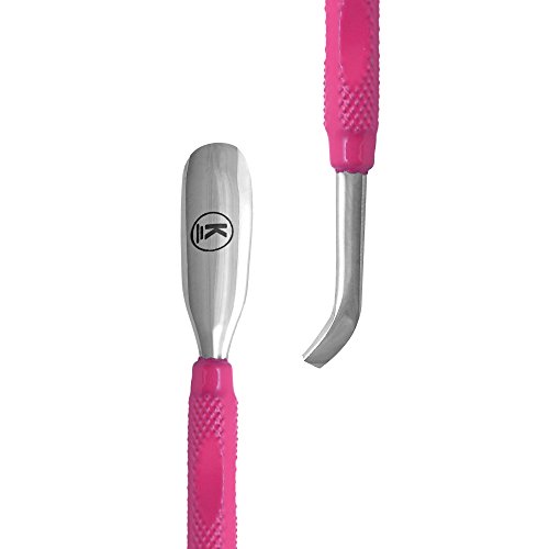 K-Pro Empujador de Cutículas y Limpiauñas con Espátula, Acero Inoxidable - Empujador Profesional (Rose)