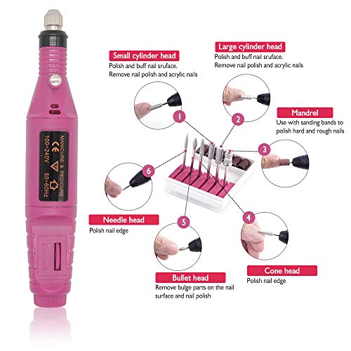 - El archivo de taladro para uñas incluye 5 accesorios profesionales para suavizar callos y callos, eliminar el exceso de cutĂculas y limar, dar forma y pulir las uñas. El tamaño pequeño de la pluma portĂĄtil se puede guardar y guardar fĂĄcilmente.