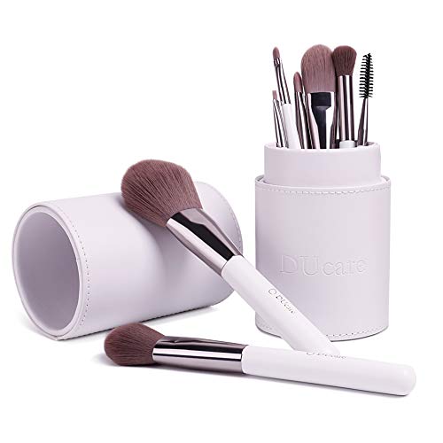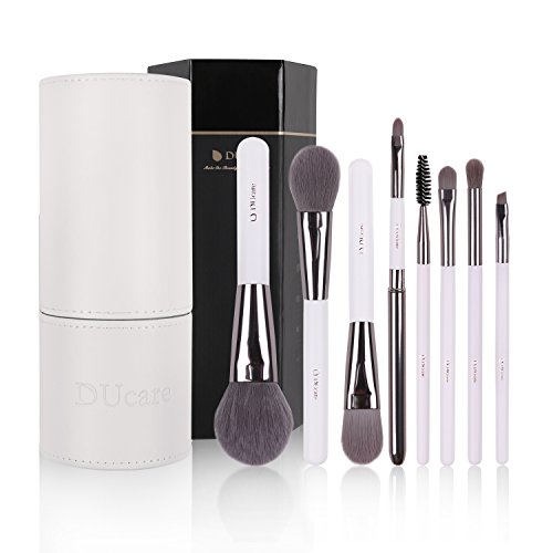 DUcare Brochas de Maquillaje Blanco 8pcs Set de Brochas de Maquillaje Profesional con Estuche