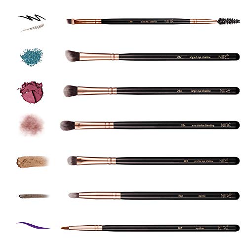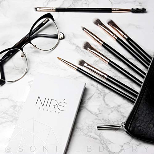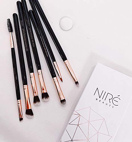 Niré Beauty: Set de brochas de maquillaje para ojos, con pinceles esenciales para sombras de ojos, pincel delineador y pincel biselado para cejas