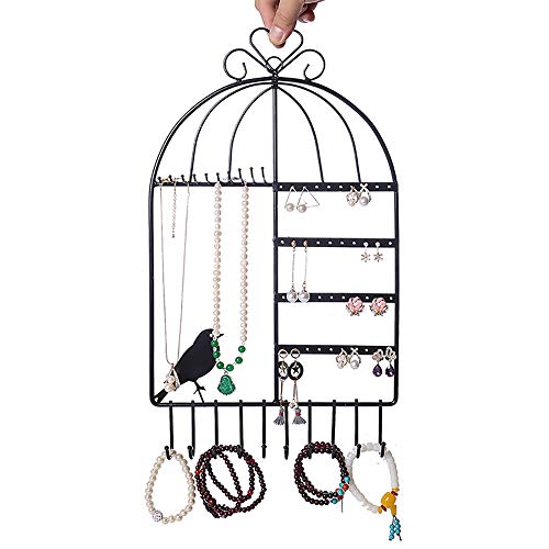aoory - Soporte para joyas, diseño de jaula de pájaros, color negro