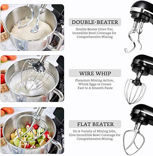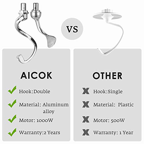 - 【Set Completo de Accesorios】 - Bol de 5 Litros y de acero inoxidable, cuenta con un asa ergonómica. Los accesorios versatiles para batir y amasar satisfacen todas las necesidades en la cocina. Aicok Batidoras y Amasadoras también incluye una cubierta de plástico para ir agregando ingredientes al bol, una vez está en funcionamiento.