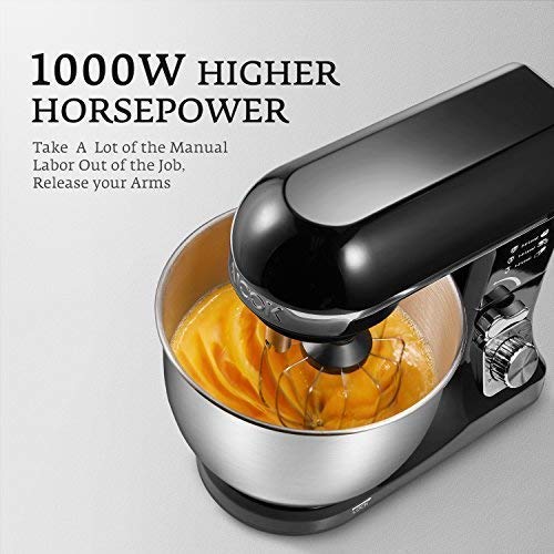 - 【Gran Potencia de 1000 Vatios & 6 Velocidades】 - Aicok Amasadora Reposteria Profesional tiene 1000W, lo que permite manipular alimentos con una gran profesionalidad. 6 niveles de potencia, se puede ajustarlo a su gusto. Niveles 1-3 / masa(por ejemplo, pan o masa corta) 2-4 / Mezclador / Mezcla de peso medio (por ejemplo, crepé o mezcla de esponja) 5-6 / Batidor / Mezcla de luz (por ejemplo, crema, clara de huevo, manjar blanco).