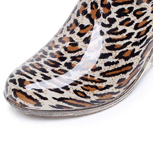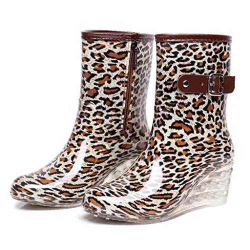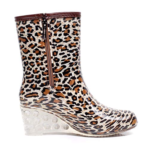 YWLINK Botas De Lluvia Mujer Impermeable Leopardo Zapatos con CuñA Botas De Nieve Estilo Punk Zapatos De Agua Transparentes Zapatos De Goma Moda CóModo TamañO Grande Tubo Medio Y Alto(marrón,40EU)