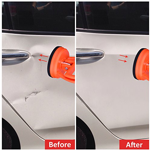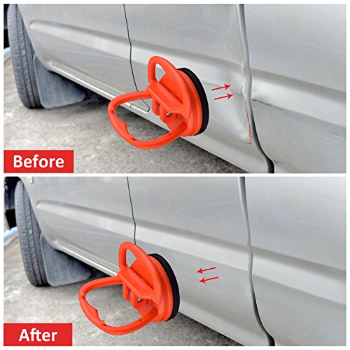 - Dimensión: las copas de succión con elevador son en naranja, y su diámetro es de 5,5 cm/ 2,17 pulgadas, adecuados para abolladuras de tamaño medio en los coches