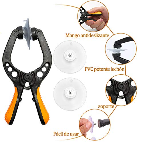 - Pinza-Ventosa hacerte desmontar la pantalla de teléfono sin esfuerzo. La 40mm, multi-ángulo PVC ventosa es de succión fuerte y uniforme. Con esta pinza-ventosa puede abrir cualquier móvil muy fácil, iPhone 7/ 7 plus, iPhone 6/ 6s/ plus, Samsung, Xiaomi, Huawei...