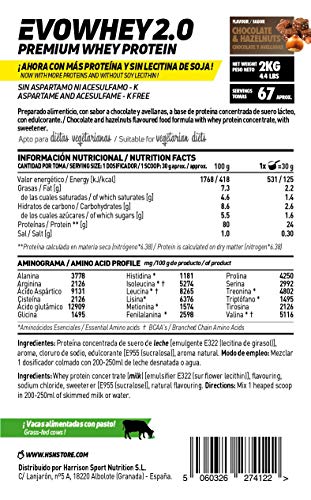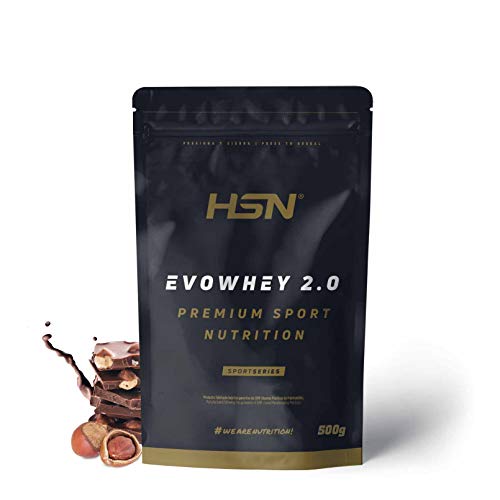 Concentrado de Proteína de Suero Evowhey Protein 2.0 de HSN | Whey Protein Concentrate| Batido de Proteínas en Polvo | Vegetariano, Sin Gluten, Sin Soja, Sabor Chocolate Avellana, 500g