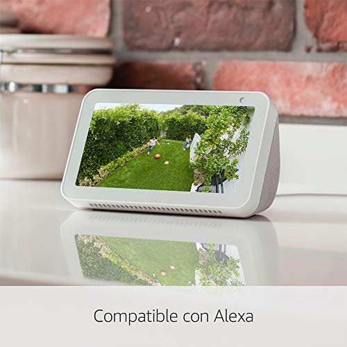 - Una cámara compacta con alimentación por cable y de use en interiores que te permite hablar, ver, escuchar a personas y mascotas desde tu teléfono, tableta o determinados dispositivos Echo.