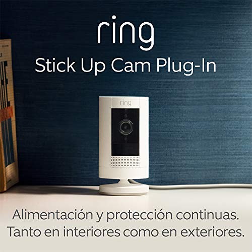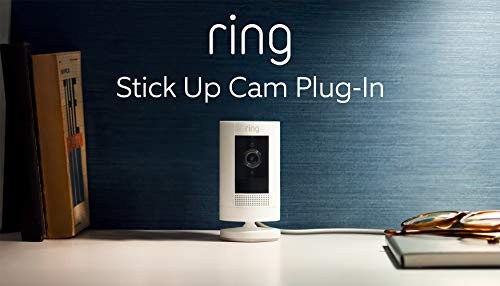 Nueva Ring Stick Up Cam Plug-In, cámara de seguridad HD con comunicación bidireccional, compatible con Alexa | Incluye una prueba de 30 días gratis del plan Ring Protect | Color blanco