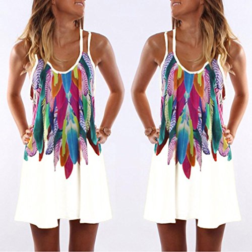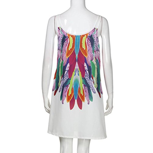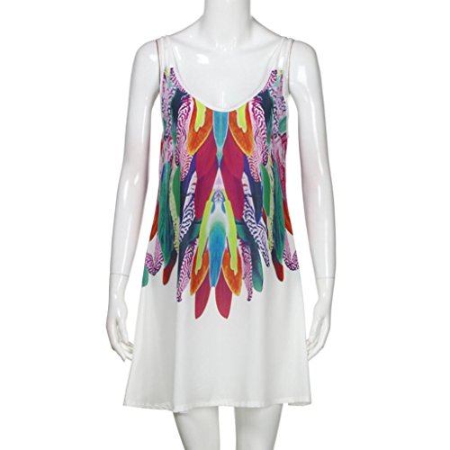 Overdose Minifalda De Swool Bohemio con Estampado Mujer Falda Gasa Sin Mangas Cuello En Pico Sneaky (M, Blanco)