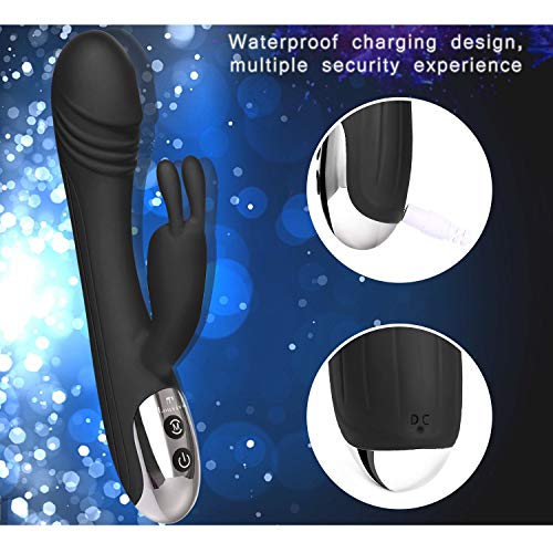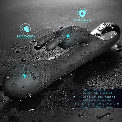 Masajeador de Silicona con 10 Modos de Frecuencia, Dos Motores, USB Recargable y 100% Impermeable, Negro