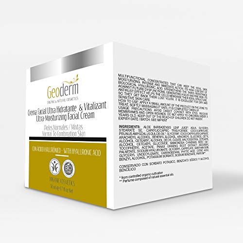 - CREMA FACIAL ULTRA HIDRATANTE CON ÁCIDO HIALURÓNICO + VITAMINA C : Esta combinación de ácido hialurónico y vitaminas actúan contra los signos del envejecimiento de la piel proporcionando múltiples beneficios como : Alisamiento instantáneo de las arrugas superficiales, Mejora la piel, luciendo así una piel más bella y joven, Beneficios de larga duración en la reparación total de la edad y piel seca.