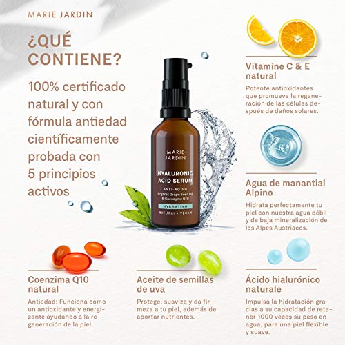 Serum de ácido hialurónico - BIO Serum facial con vitamina C y Q10 - Efecto antiarrugas, para el contorno de ojos, base para el maquillaje - 50ml - de Marie Jardin