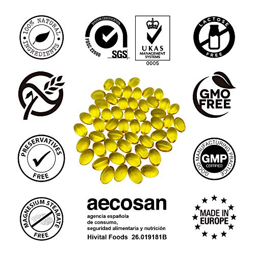 - ? MÁXIMA CANTIDAD, CALIDAD Y GARANTIA DEL 100%: Ofrecemos 300 cápsulas por bote, suministro para 10 meses | Nuestro producto es 100% Natural, Sin Gluten, Sin Lactosa, Sin Soja, Sin Estearato de Magnesio, Sin Azúcar, Sin Conservantes ni Colorantes, No transgénico (GMO Free), Fabricado en España bajo certificados GMP e ISO | Hivital Foods está registrada en AECOSAN con número 26.019181B | 100% SATISFACCIÓN GARANTIZADA ¡Si no quedas completamente satisfecho, te devolvemos tu dinero!