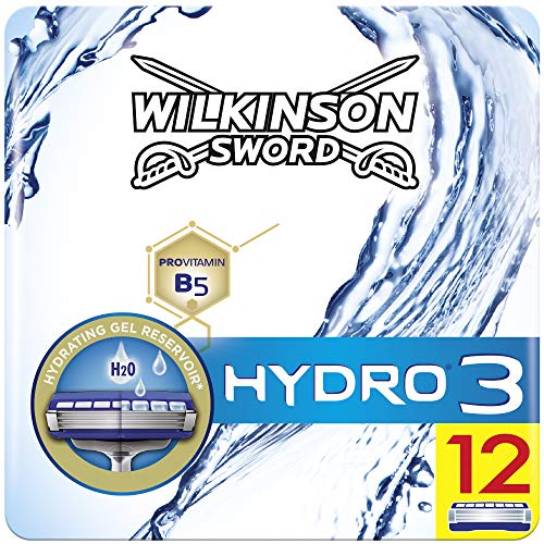 Wilkinson Sword BOX Hydro 3 - Pack 12 Recambio de Cuchillas de Afeitar de 3 Hojas para Hombres, Afeitado Masculino