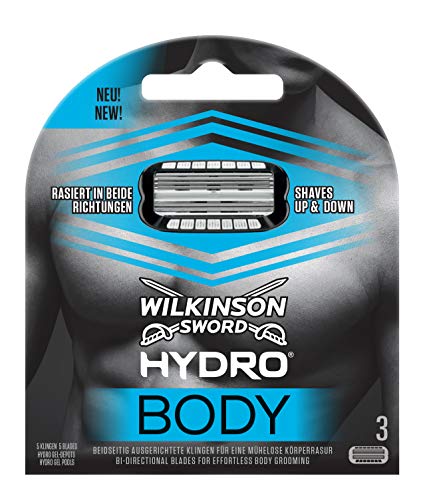 Wilkinson Sword Hydro BODY - Recambio de Cuchillas para Afeitadora Corporal Hombres con 5 Hojas Bidireccionales para una Depilación del Cuerpo en Ambos Sentidos , Pack 3 Unidades