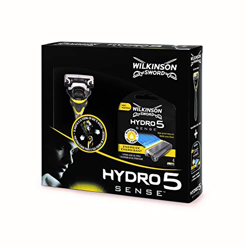 Wilkinson Sword PACK Hydro 5 Sense - Kit con Máquina de Afeitar Recargable de 5 Hojas con Gel Hidratante para Hombre + 4 Cuchillas de Recambio