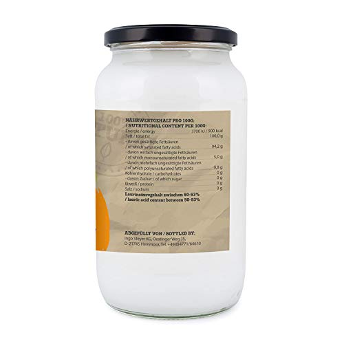 - CERTIFICADO ECOLÓGICO Y VEGANO: puro y orgánico al 100%. Producido en Sri Lanka, posee un certificado ecológico por organismos de control autorizados por el Ministerio de Agricultura. No refinado y extraído de la pulpa de coco. Prensado en frío para preservar todas las propiedades nutricionales.