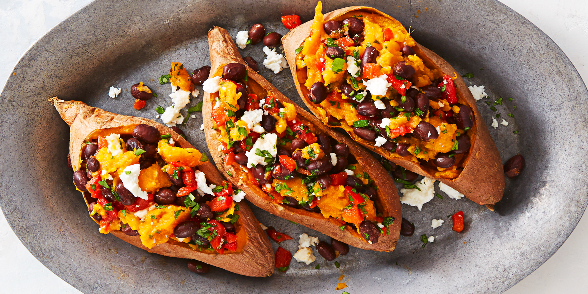 Use las papas en una variedad de recetas, incluyendo platos de desayuno, cazuelas e incluso postres. Nos encanta hornear un lote de batatas para la semana y añadirlas a las comidas dulces y saladas. Consejo: Mantenga la piel de la batata para maximizar el contenido de fibra. Cámbialo y trata de hacer: