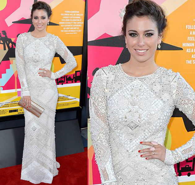 Para el estreno de la película de Almodovar en la ciudad de LA, Blanca se decantó por un modelo blanco hasta los pies, en color crudo y con perlas bordadas por todo el mismo. Un vestido muy barroco y del estilo que a ella le gustan, pues parece que este tipo de modelos se ha convertido en una de sus señas de identidad a la hora de pisar una alfombra roja.