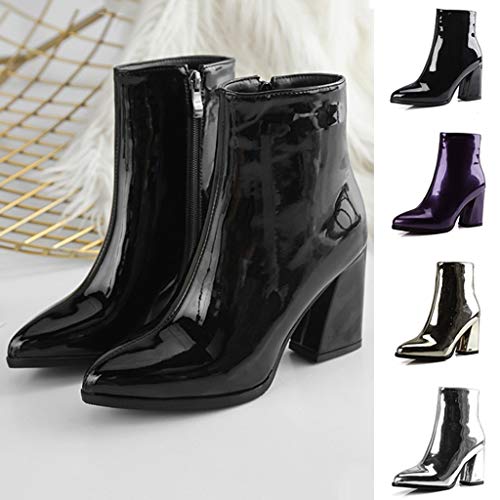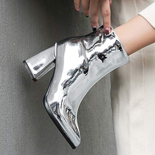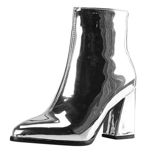 Zapatos Mujer para Lluvia Botas De Mujer Botines De Fiesta De Tobillo De Charol Con Espejo Puntiagudo Zapatos De Mujer