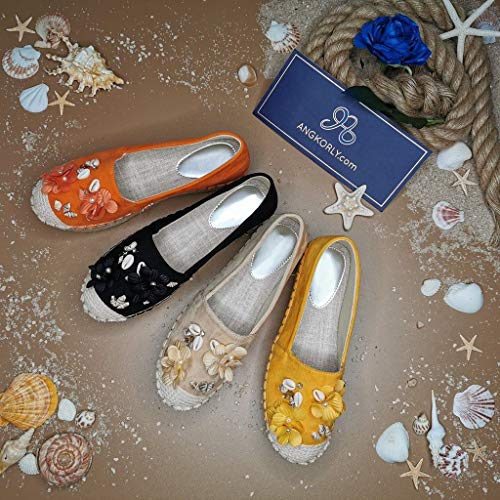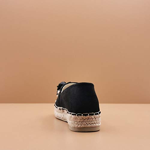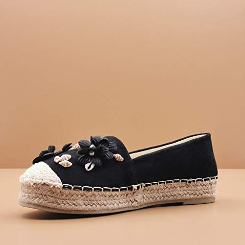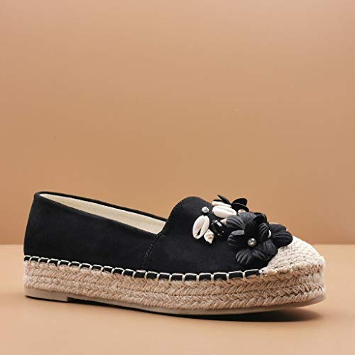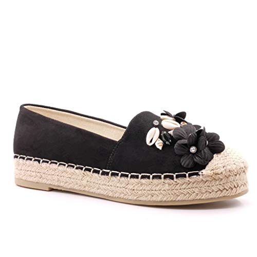 Angkorly - Zapatillas Moda Alpargata Playa Bohemia Elegante Mujer Flores Acabado Costura Pespunte Bloque 4 CM - Negro 15 FN555 T 39