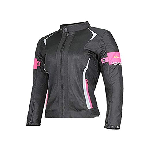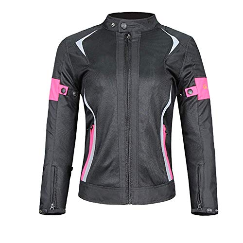 LALEO Mujeres Corte Ajustado Chaqueta de Moto, Impermeable Ajustable Mantener Caliente Resistente con Armours CE y Reflexivo Cuatro Estaciones Chaqueta para Motocicleta Rosa Negro,M