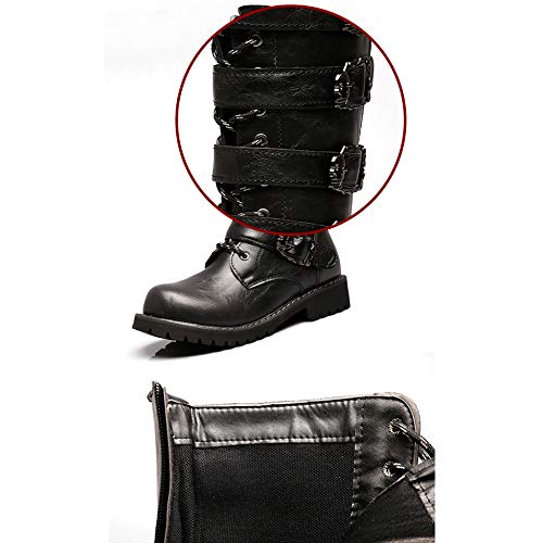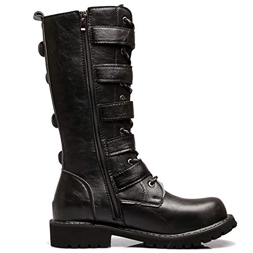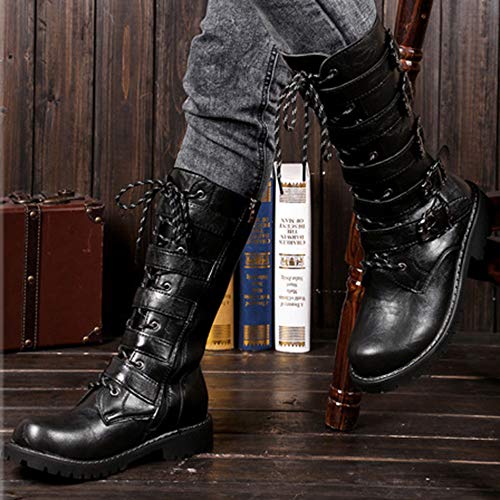 MERRYHE Botas Altas Martin para Hombre Botas Militares Tácticas Militares Botas De Hebilla Botas De Becerro De Cuero De La PU Botas De Wellington para Halloween Cosplay,Black-46