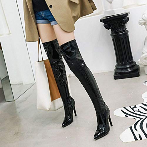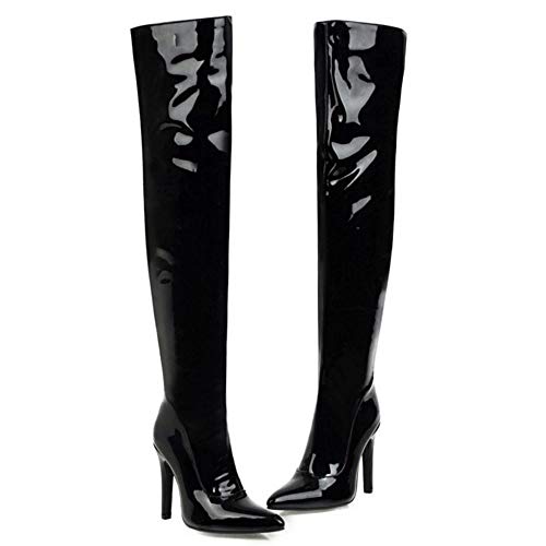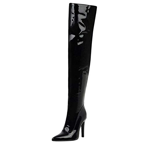 COOLCEPT Mujer Elegante Tacón de Aguja Botas de Muslo Puntiagudo Botas Cremallera Fiesta Botas Vestido Black Talla 40 Asian
